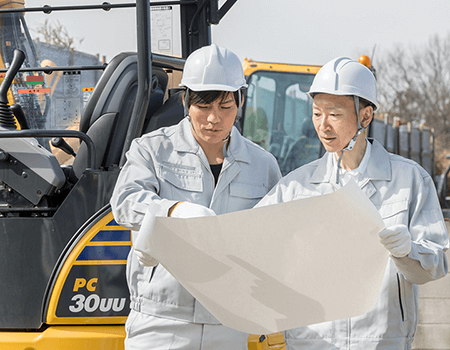 掘削・埋立などの大型重機土工、道路改良工事、公共下水面整備、そして舗装にいたるまで、大型から小型の自社機械、自社ダンプを使用しての土木工事を手がけております。